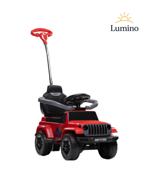 این ماشین سواری کودک با طراحی شبیه خودروهای آفرود و بدنهای مقاوم، هم از نظر ظاهری چشمگیر است و هم از نظر عملکرد بسیار کاربردی. وجود دسته هدایت والدین باعث میشود پدر و مادر بتوانند کنترل کامل حرکت خودرو را در دست بگیرند و با خیال راحت کودک خود را هدایت کنند.